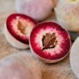 Grise à l’extérieur, rouge vin à l’intérieur – les pêches de vigne rouges séduisent par leurs qualités intrinsèques.